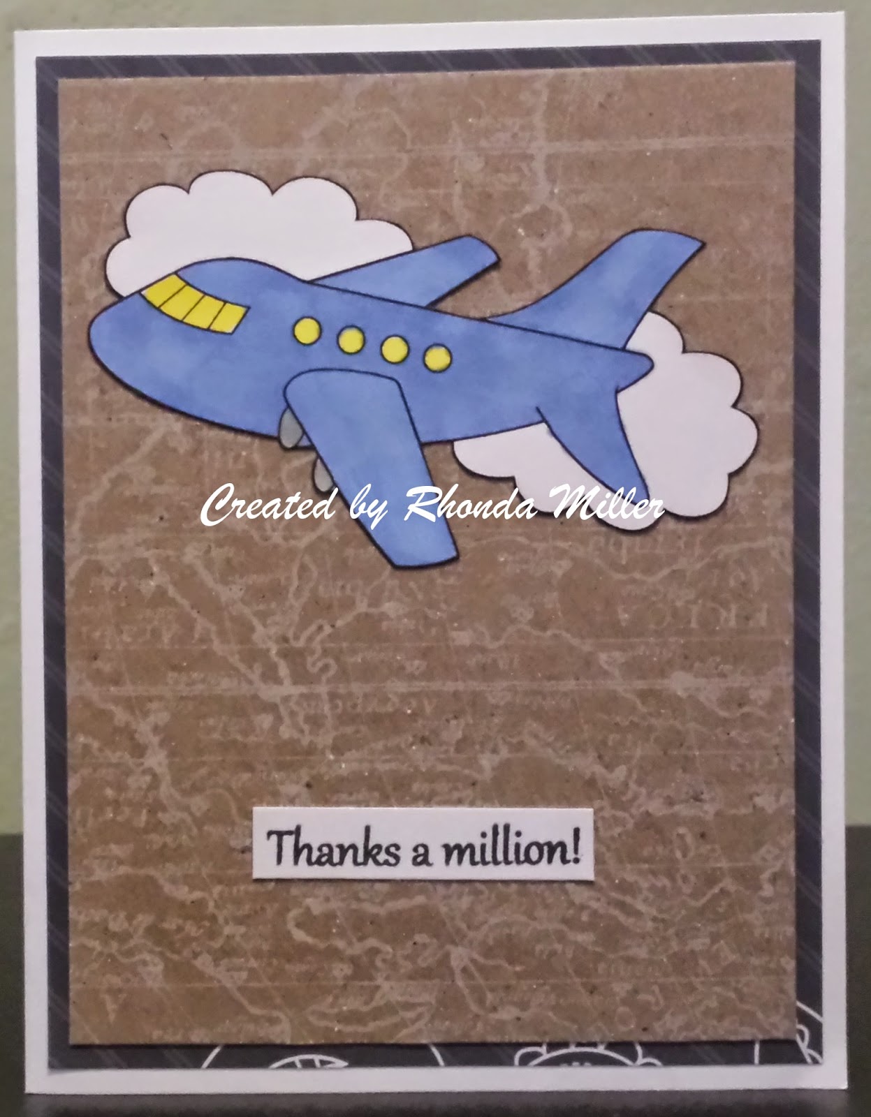I used the airplane from the Are We There Yet stamp set from Deedee's Digis. The image is colored with Sharpies. The DP is DCWV and the sentiment is Cardz TV.